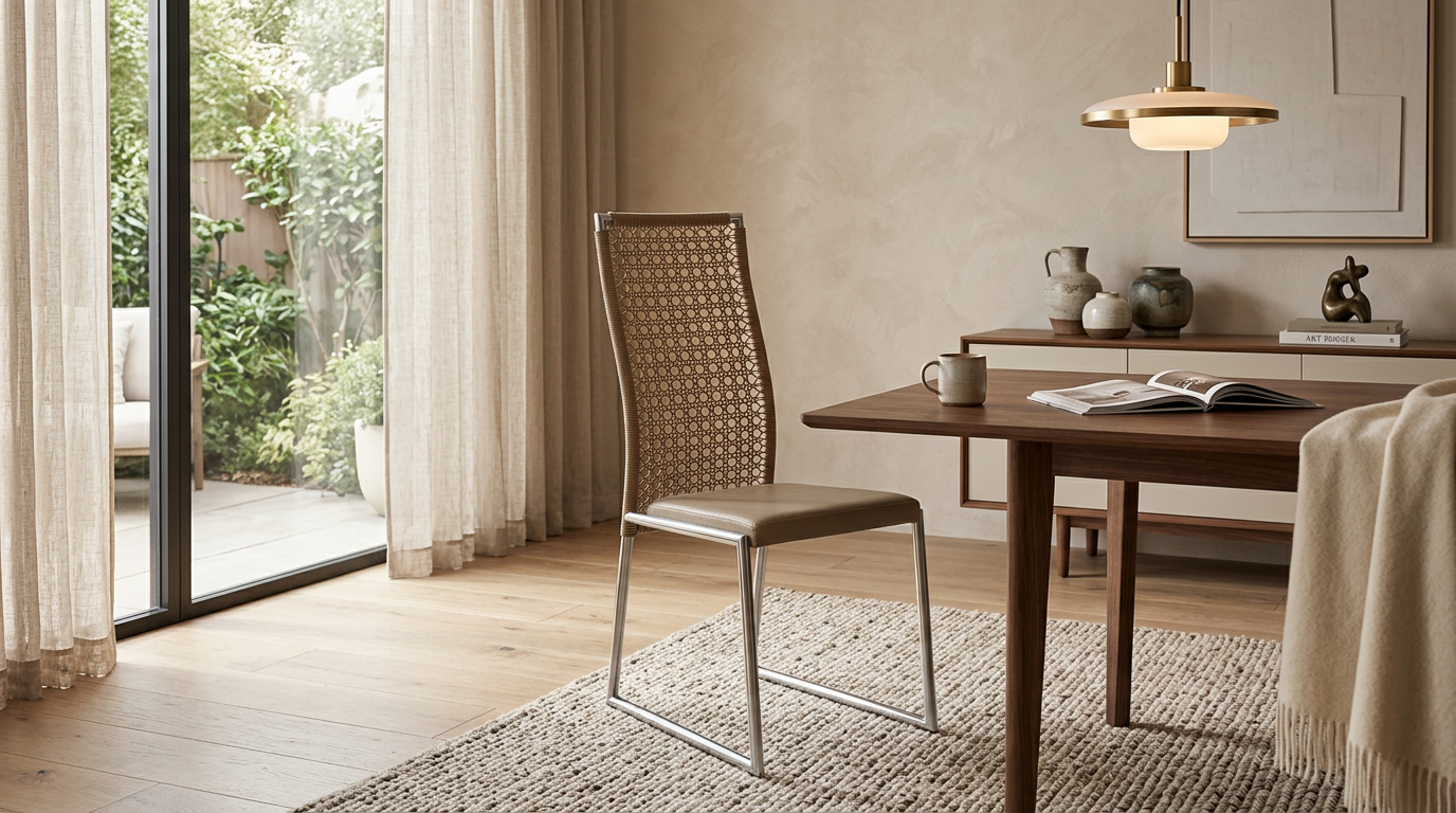 Das perfekt verarbeitete Edelstahl-Stuhlgestell aus rostfreiem V2A ist pflegeleicht, nahezu unverwüstlich und extrem langlebig. Das ergonomisch geformte Rückenteil mit dem extrem aufwändigen Geflecht aus wetterfestem und pflegeleichtem Dual-String-Gewebe gibt es nur von Okazi. Beste handwerkliche Fertigung machen diesen Esszimmerstuhl zu einem echten Okazi Meisterstuhl.